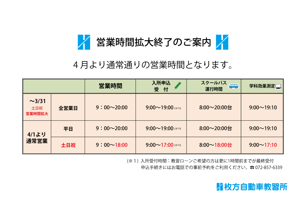 営業時間 ※入所受付時間について:お申込多数の場合は、時間前に受付を終了する場合がございますのでご了承ください。 営業時間拡大終了のご案内