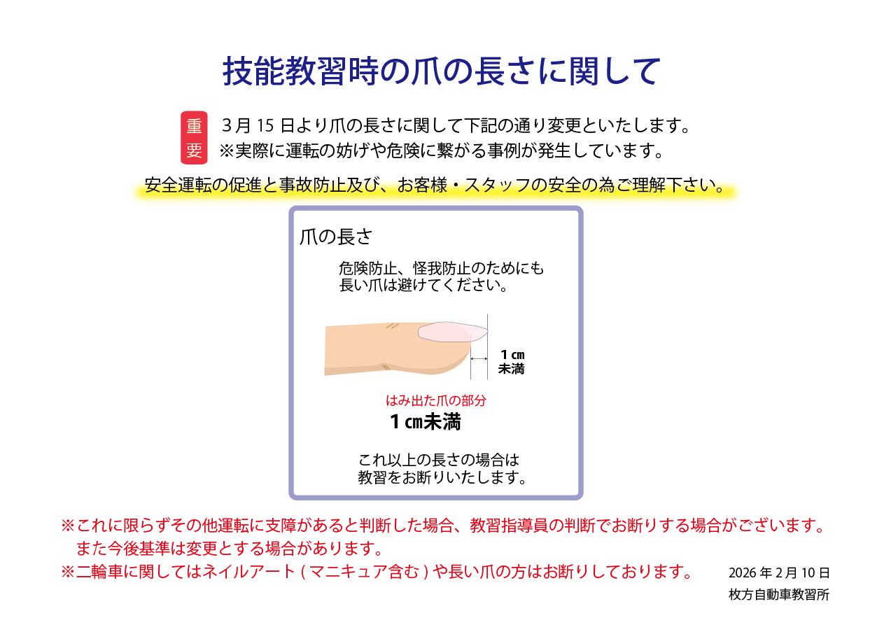 技能教習時の爪の長さに関して